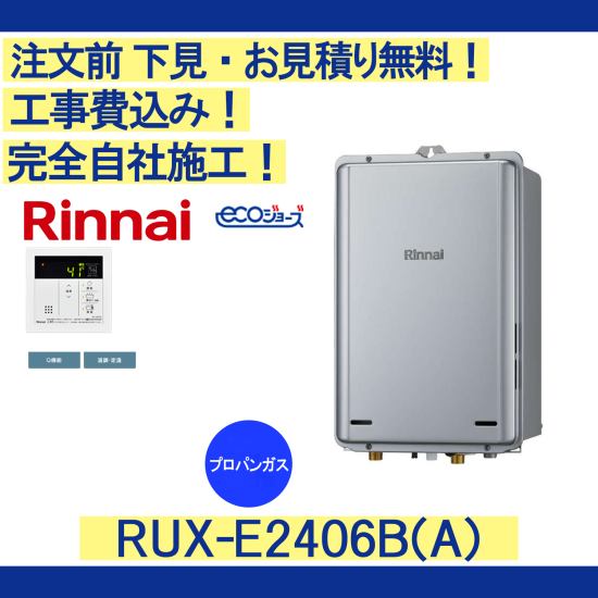 ガス給湯器 工事費込み RUX-E2406B(A) リンナイ 注文前下見無料 プロパンガス/24号/給湯専用 リモコンセット付