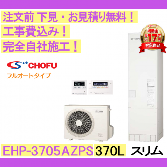 エコキュート 工事費込み EHP-3705AZPS CHOFU 注文前下見無料 スリム/370L/高圧パワー給湯/ecoとくフルオート 一般地向け インターホンリモコンセット・脚部カバー付